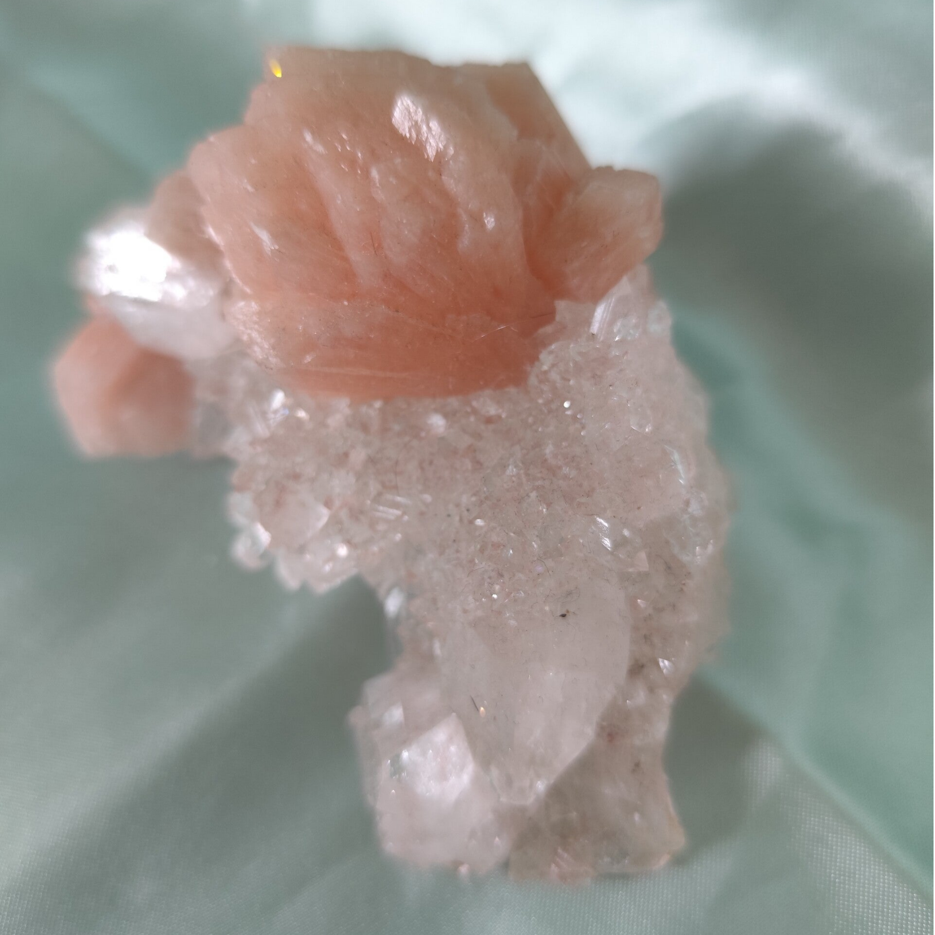 Ein wunderschöner Apophyllit Cluster mit Stilbit Dieses Exemplar hatt viel Glitzer und sieht wunderschön aus.